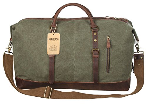 Best Seller! EverVanz Oversized Travel Duffel Canvas Leather Trim Tote shoulder handbag Weekend Bag Review